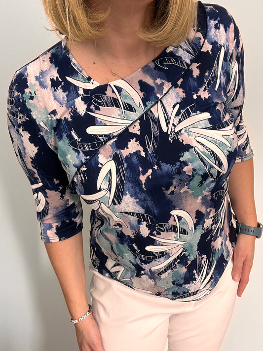 SOPHIE v-neck fine-knit top 3/4 sleeves