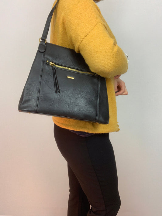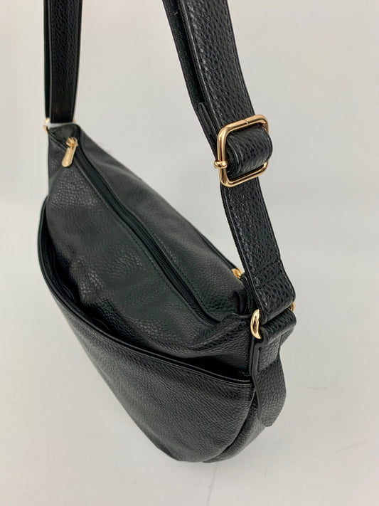 SAN REMO BLACK - triple compartment faux leather crossbody/ shoulder handbag
