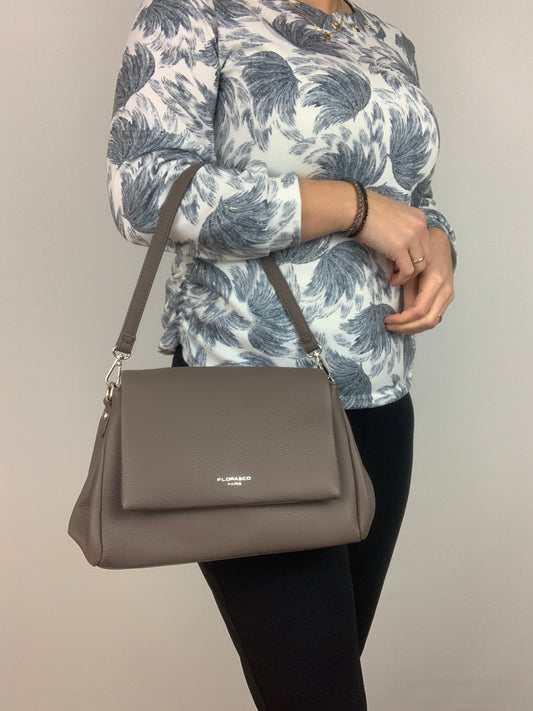 VERONA TAUPE- Soft faux leather shoulder bag large