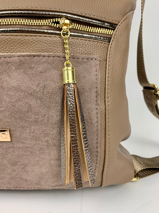 SAN REMO TAUPE - triple compartment faux leather crossbody/ shoulder handbag