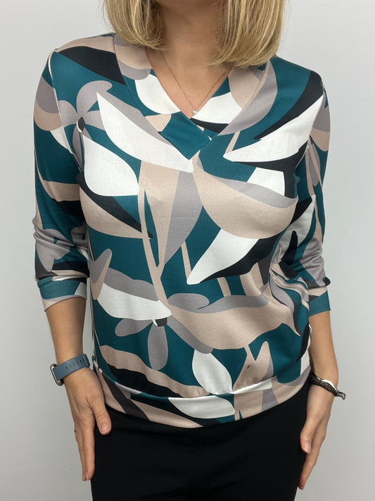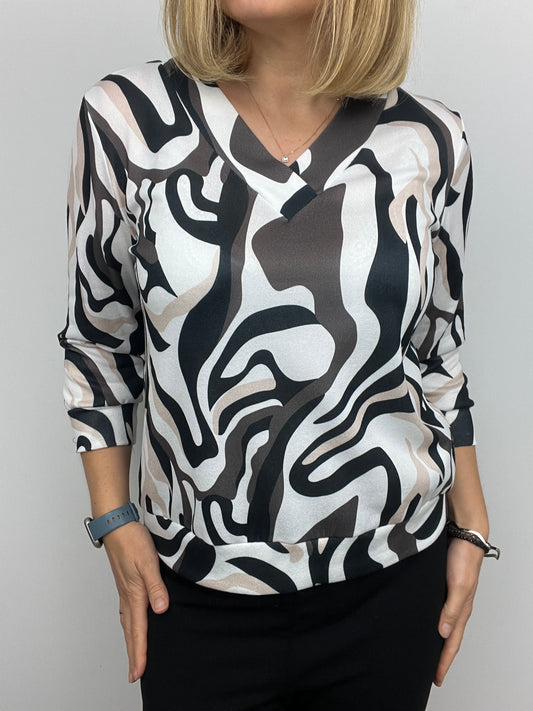 SOPHIE v-neck fine-knit top 3/4 sleeves