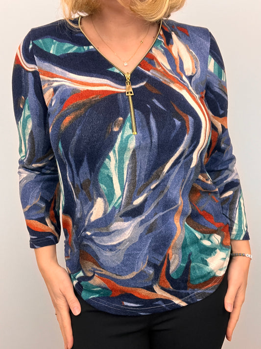 SOPHIE v-neck fine-knit top 3/4 sleeves