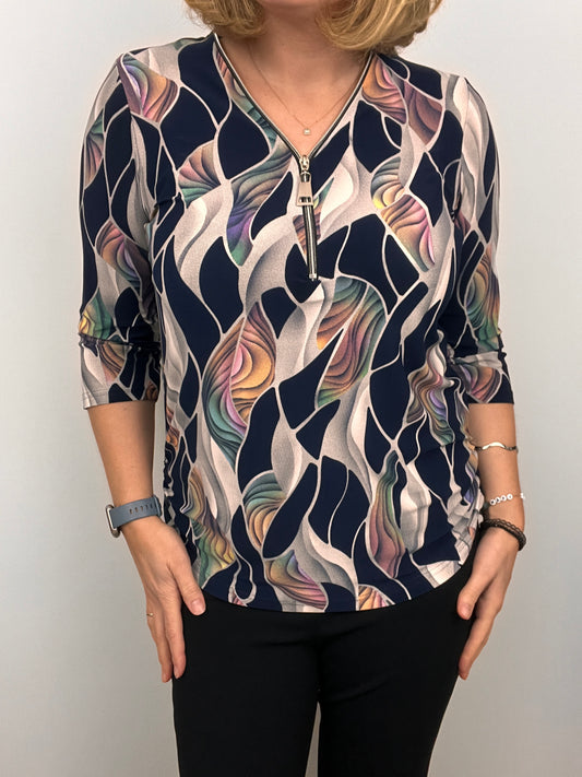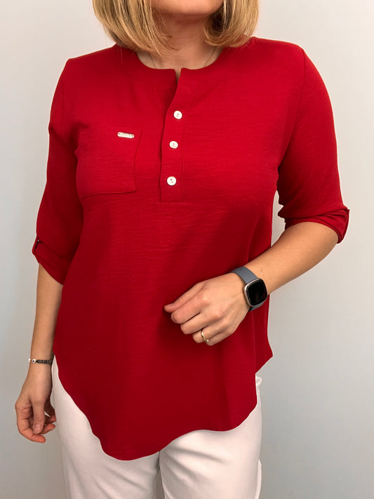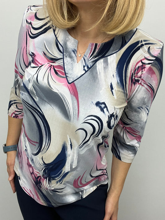 SOPHIE v-neck fine-knit top 3/4 sleeves