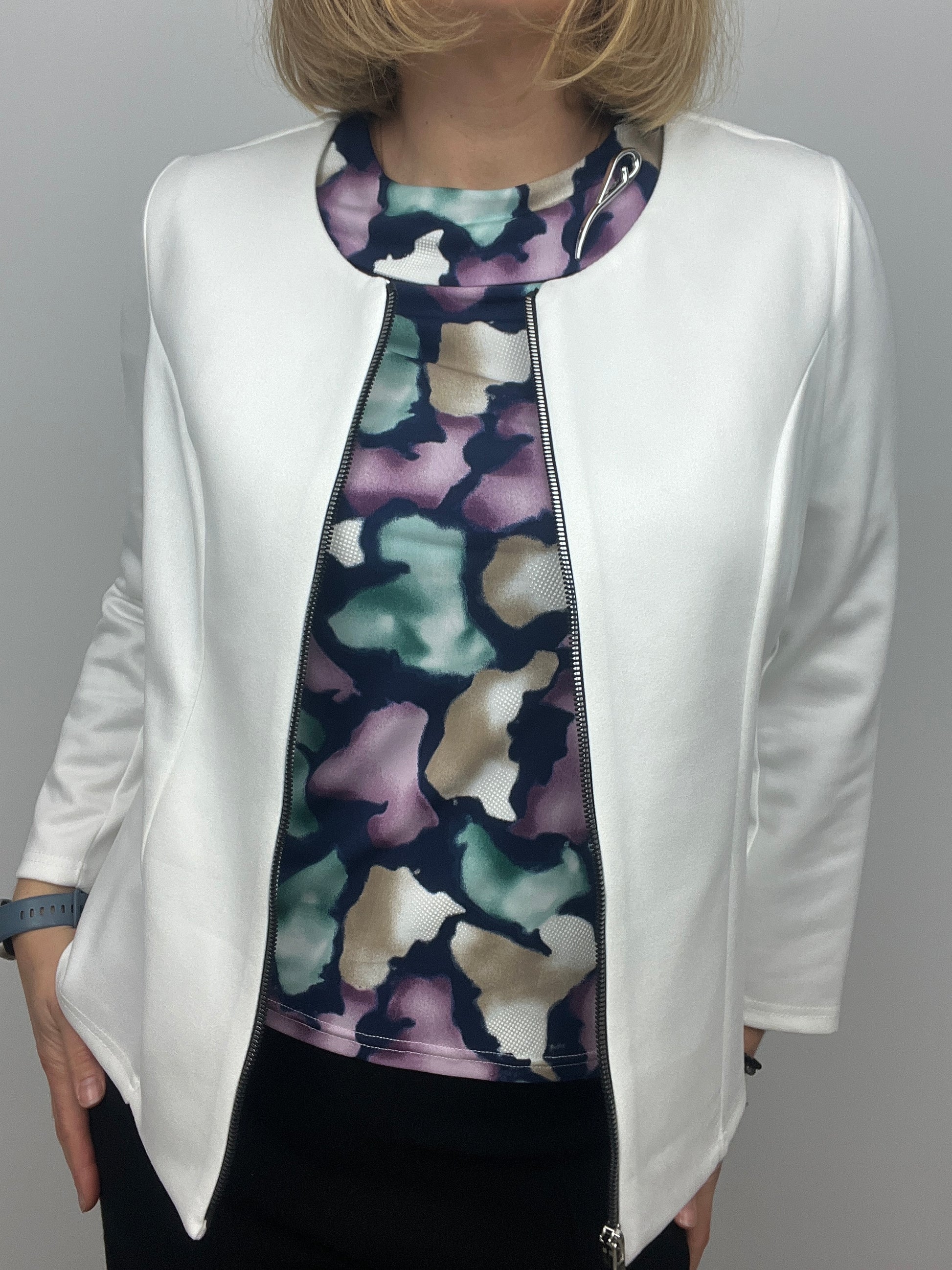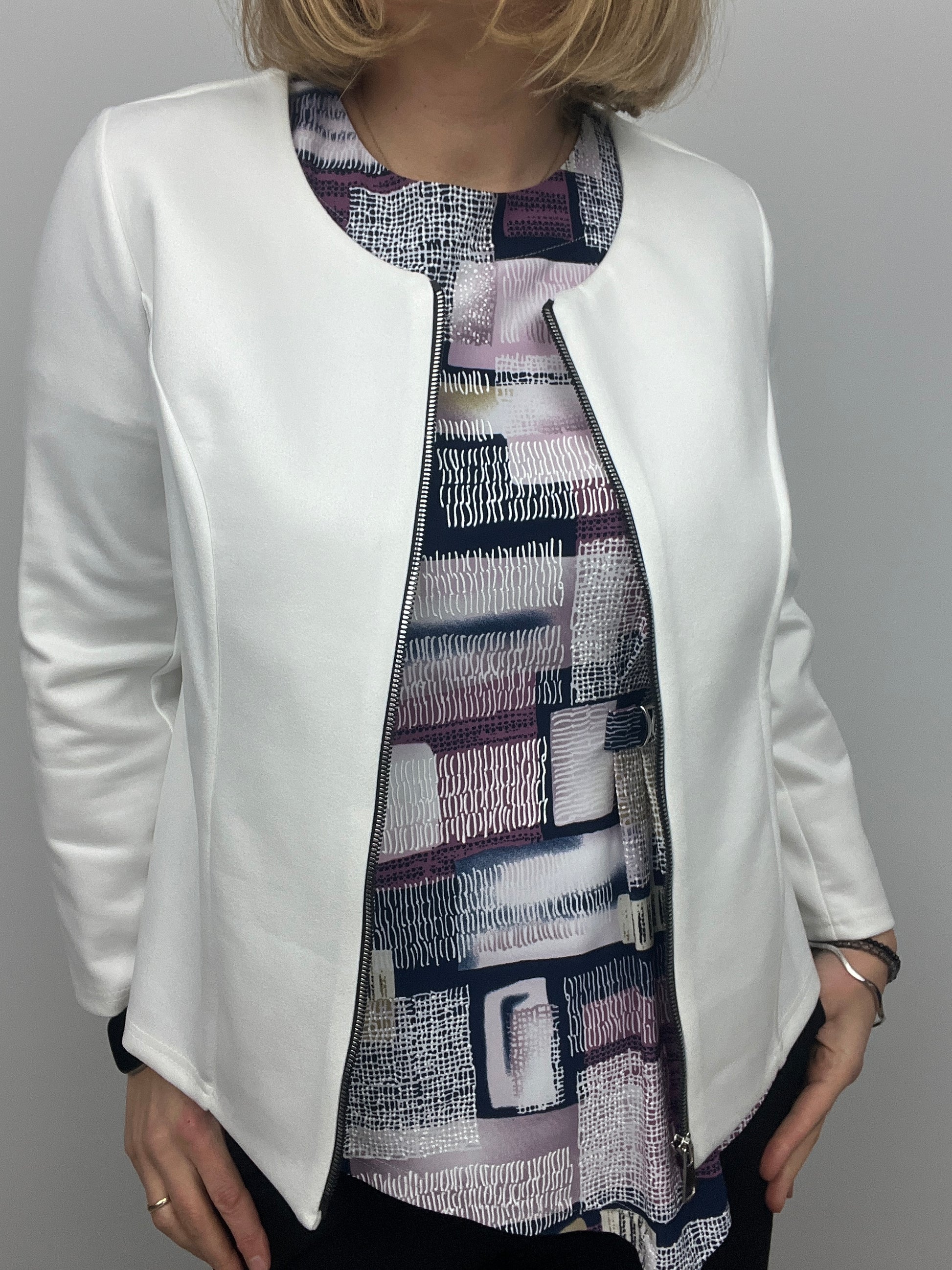 This faux suede jacket is made with high-quality materials and comes in a stylish refreshing cream color. It features a durable zipper and a comfortable, flattering fit.