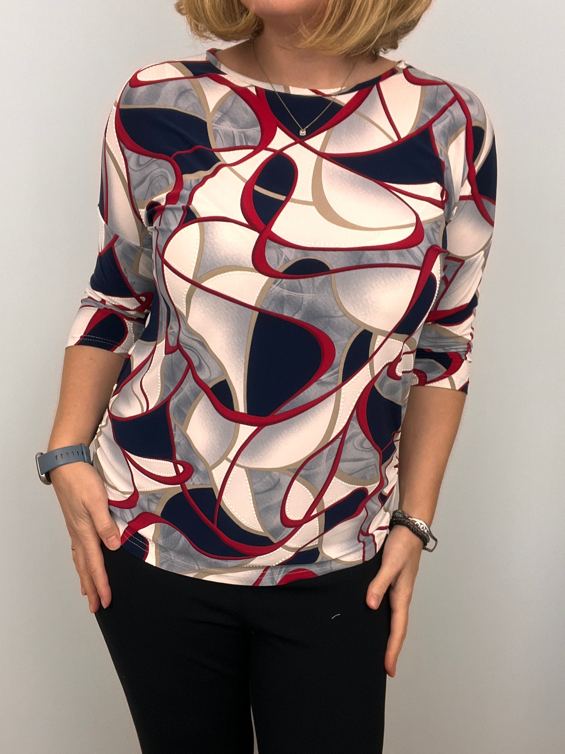 This Joan top comes in fantastic combination of red, navy, white and grey and it is made of quality stretchy fabric that doesn't cling.